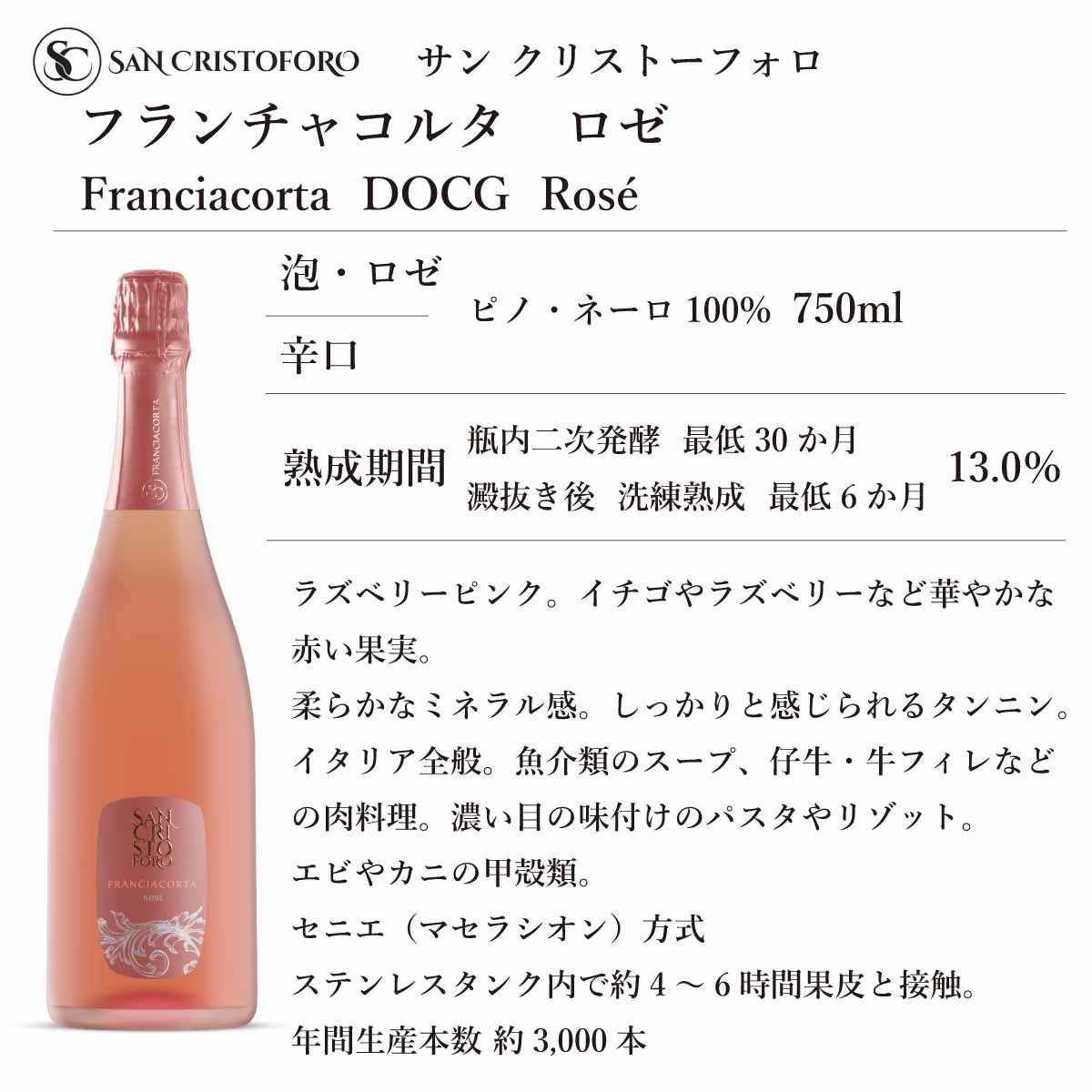 サンクリストーフォロ フランチャコルタ パ・ドゼ ロゼ (750ml) [泡・ロゼ]